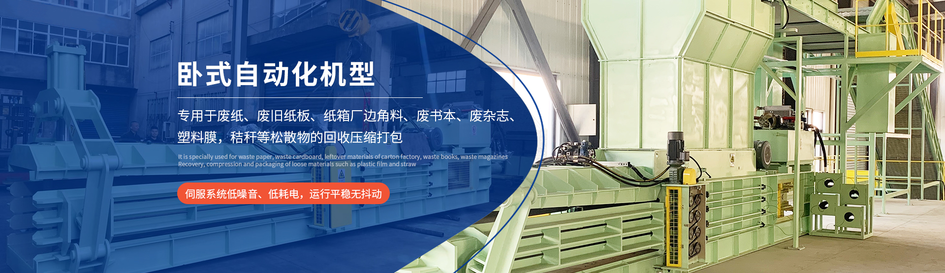 重型卧式打包机又称全自动液压打包机,专门用于废纸、废纸板、纸箱厂边角料、废书、废杂志、塑料薄膜、稻草等松散物料的回收、压缩和打包。